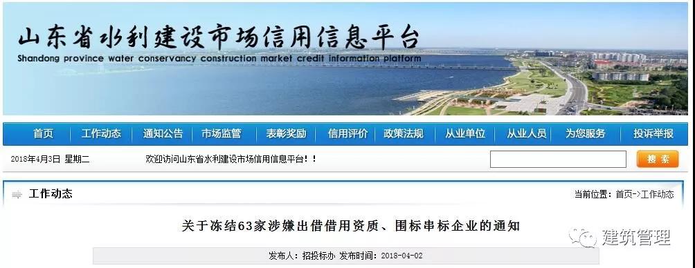 近日,山東省住建廳發(fā)現(xiàn)63家企業(yè)在水利建設(shè)市場招標(biāo)投標(biāo)活動(dòng)中涉嫌出借借用資質(zhì)、圍標(biāo)串標(biāo)。